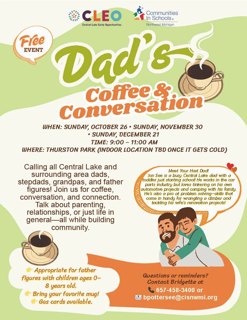 Dad’s Coffee and Conversation: Get to know other dads and father figures of kids ages 0-8.